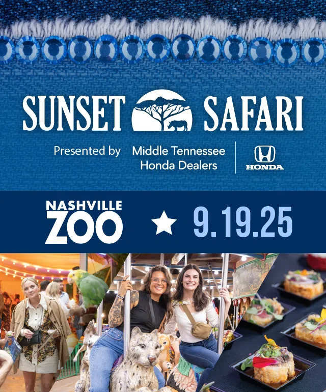 Dust off your boots for Sunset Safari: Rhinestones & Rhinos, Nashville Zoo’s signature fundraising event, presented by Middle Tennessee Honda Dealers! This year’s event on Friday September 19th starting at 6:30pm brings a sparkling twist to the Zoo’s after-hours party, where wild flavors and Southern charm roam free.