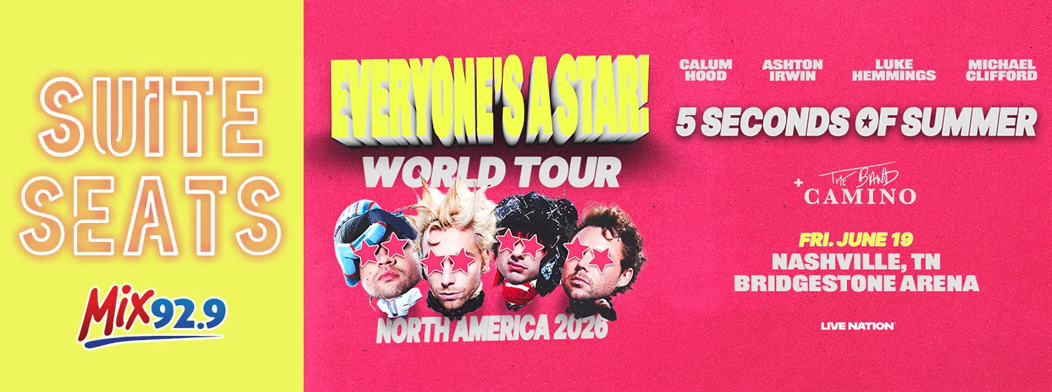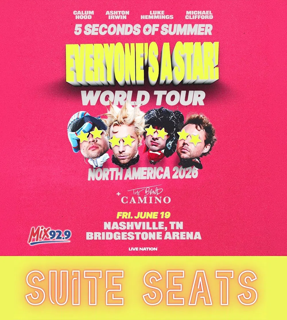 The Everyone’s A Star! World Tour, with special guest The Band Camino, comes to Nashville this June, and Mix 92.9 is getting you into the show VIP-style, with a pair of Suite Seats! You’ll enjoy the show from Bridgestone Arena’s 501 Club Suite, with free parking, free food and free drinks all night long!