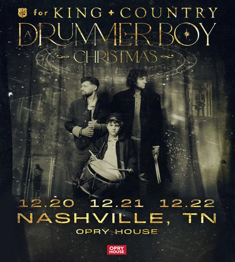 Grammy award-winning duo for KING + COUNTRY takes the Opry House stage for three nights this holiday season for their A Drummer Boy Christmas Tour: The 2023 Tour Experience.