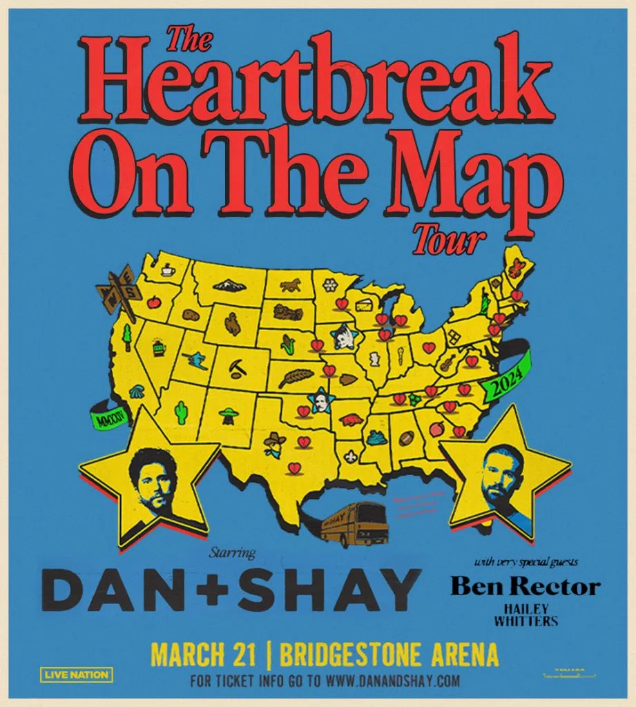 Dan + Shay are pinning Nashville to their Heartbreak On The Map tour on March 21st, and Mix 92.9 wants you to experience the show in style, from the Eurostone Club Suite in Bridgestone! Win two suite tickets, free food and drink all night long AND a parking pass, courtesy of Mix 92.9!